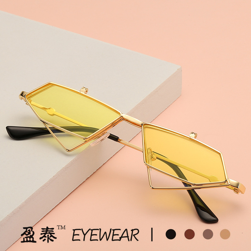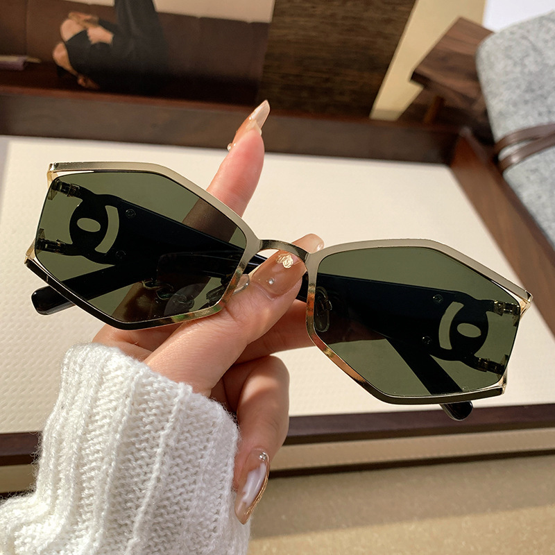 2025クロスボーダー新型ひし形サングラス透かし彫り鏡脚金属ファッションサングラス多角形ネット赤街拍眼鏡
