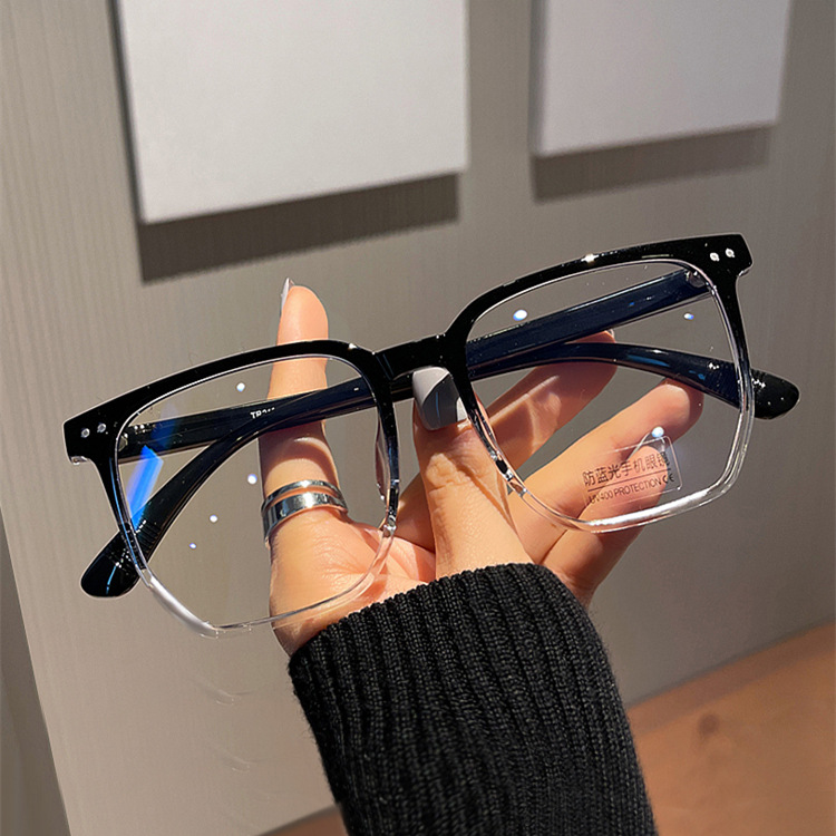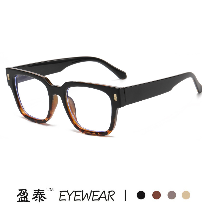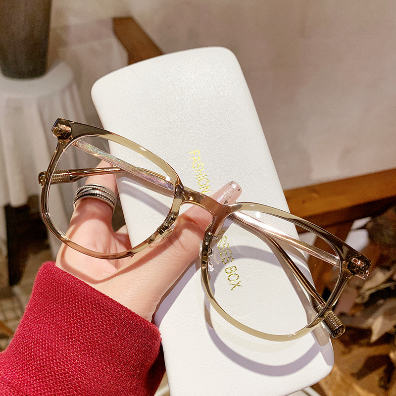 新品tr90冷茶色近視メガネフレーム韓国風個性リベット素顔フラットミラーinsアンチブルーレイメガネ