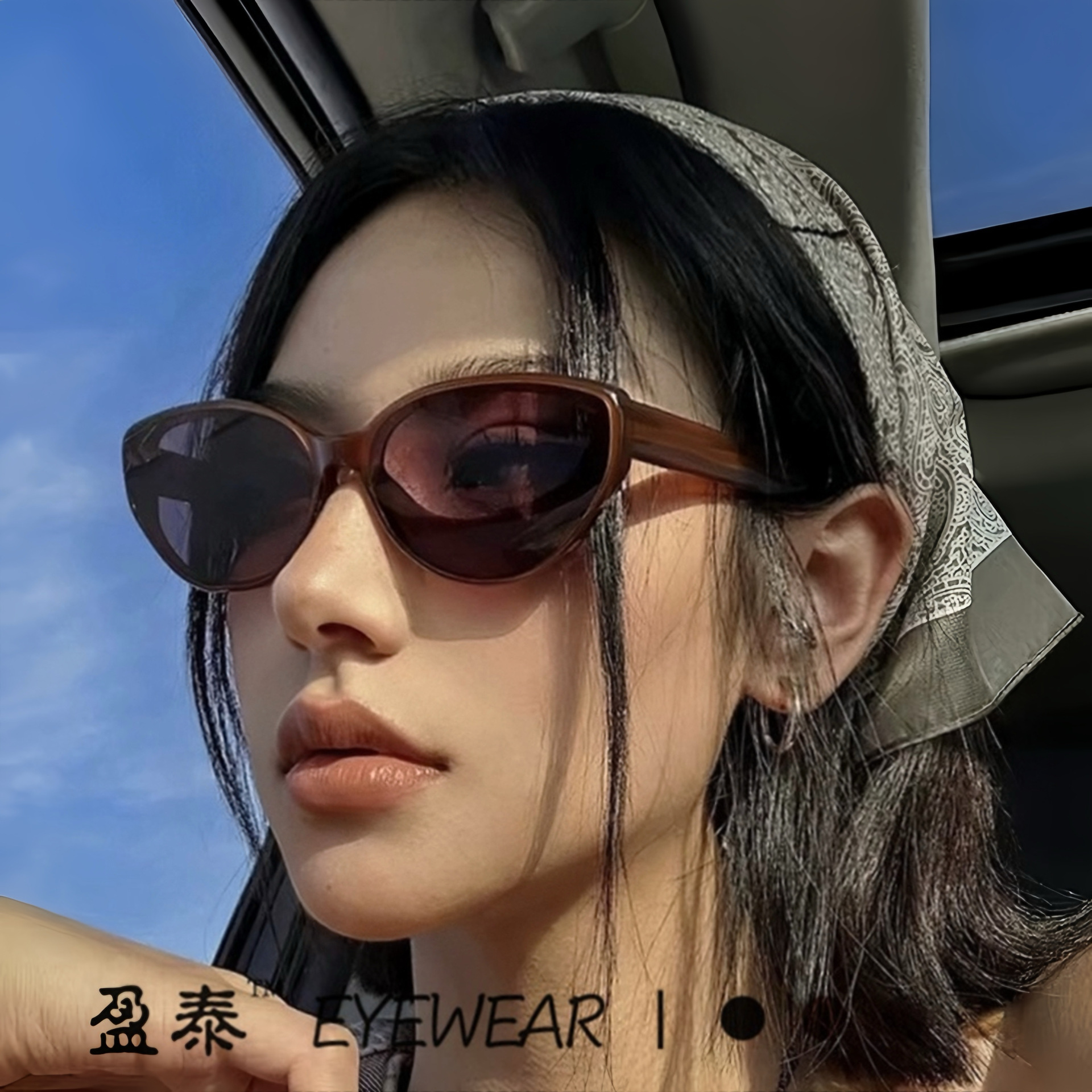 Gmサングラスレディース2024新作栗猫アイズサングラス高级感防紫外线ファッション小枠偏光サングラス