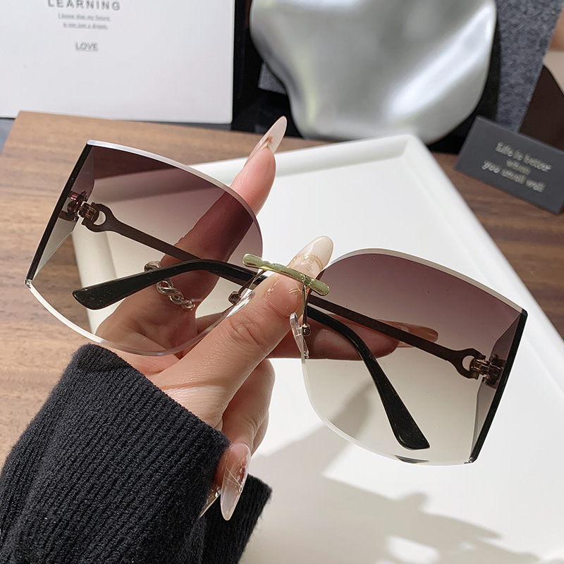 レトロフレームレスサーフェス一体型サングラスオシャレ高级感着挂けメガネ个性アルファベット装饰サングラス