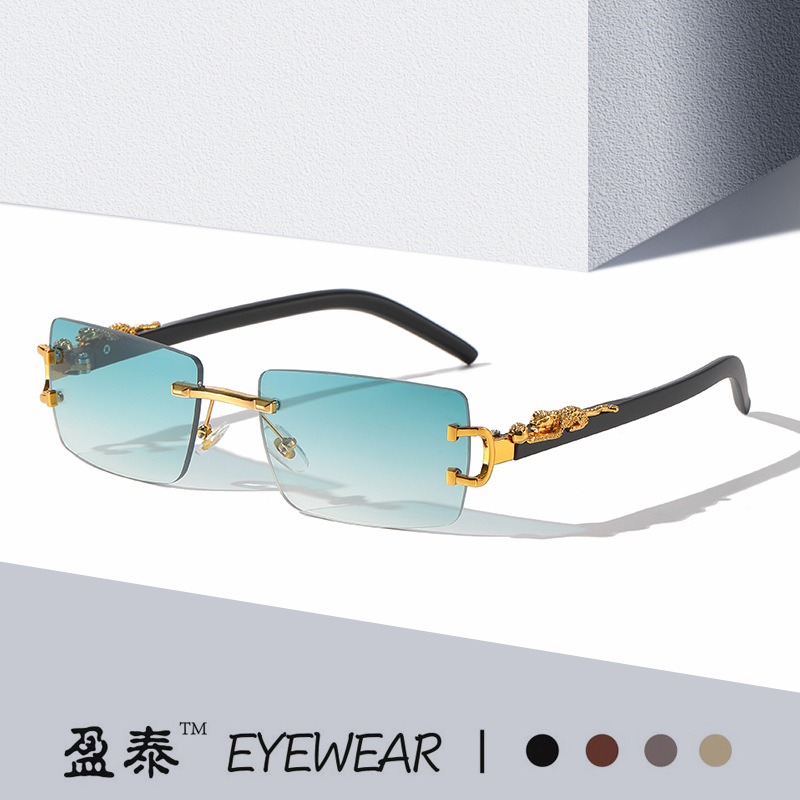 新しいフレームなしの正方形のサングラス欧米のレトロなチーターの装飾のサングラスの越境のヒョウの頭の金属のサングラス