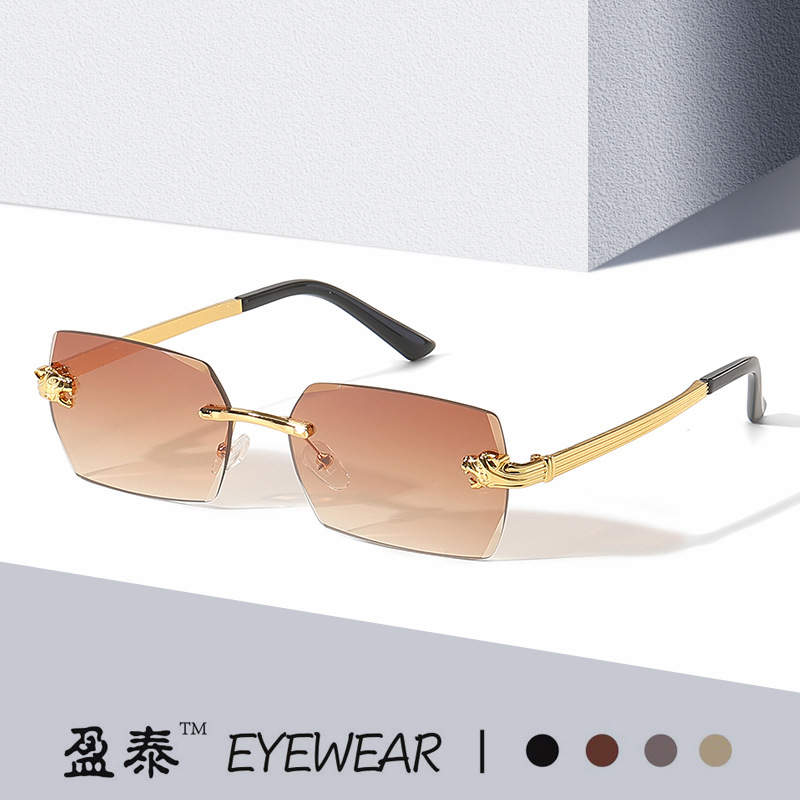 新型F字枠なしサングラス角型欧米レトロネット赤同モデルサングラス女性ファッション金属クロスボーダー