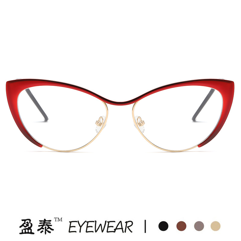 欧米の越境して新型の猫の目の鏡の枠の女性のファッション的な金属の平光の鏡の卸売りは近視の青い眼鏡の枠を配合することができます。