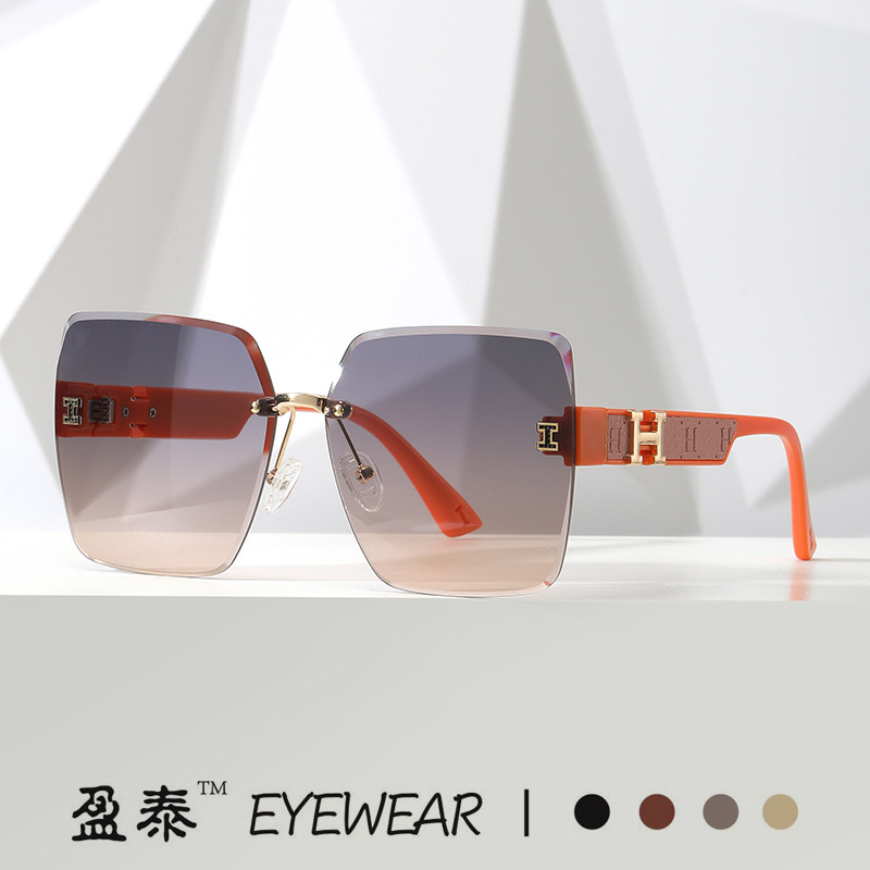 新型h家の四角い縁なしサングラスネット赤個性街拍眼鏡大枠ファッションサングラス卸売り