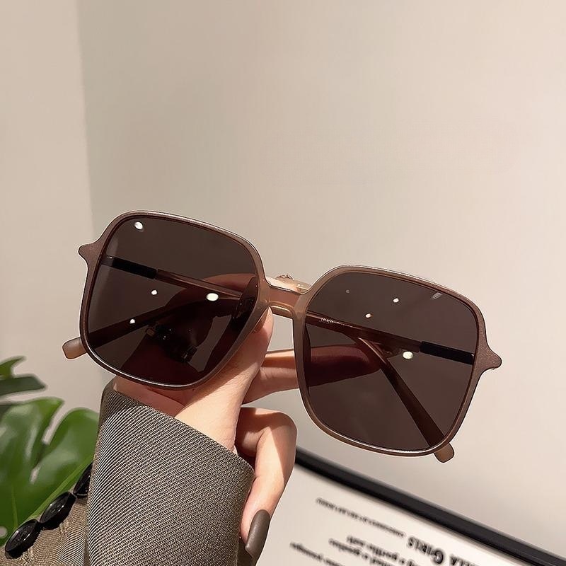 D家の新型コーヒー色の四角形の大きな枠の高級感のサングラスの赤い本のネットの赤い個性の紫外線防止のサングラス