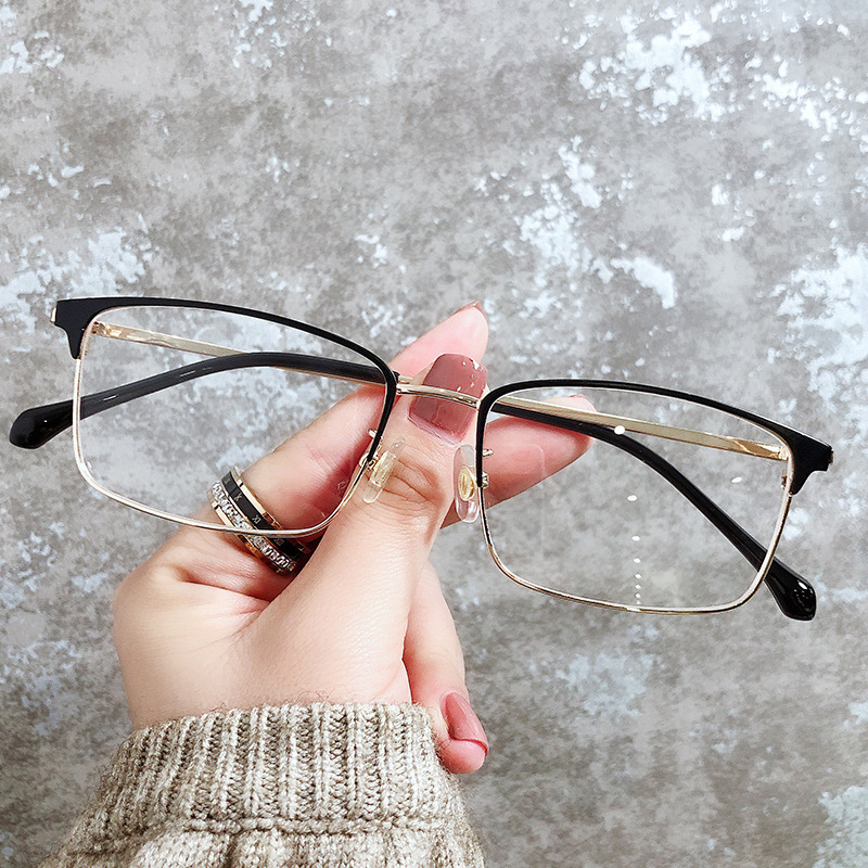新型ビジネスメガネ枠男性金属レトロ眉半枠メガネフレーム近視メガネ付きブルーライト
