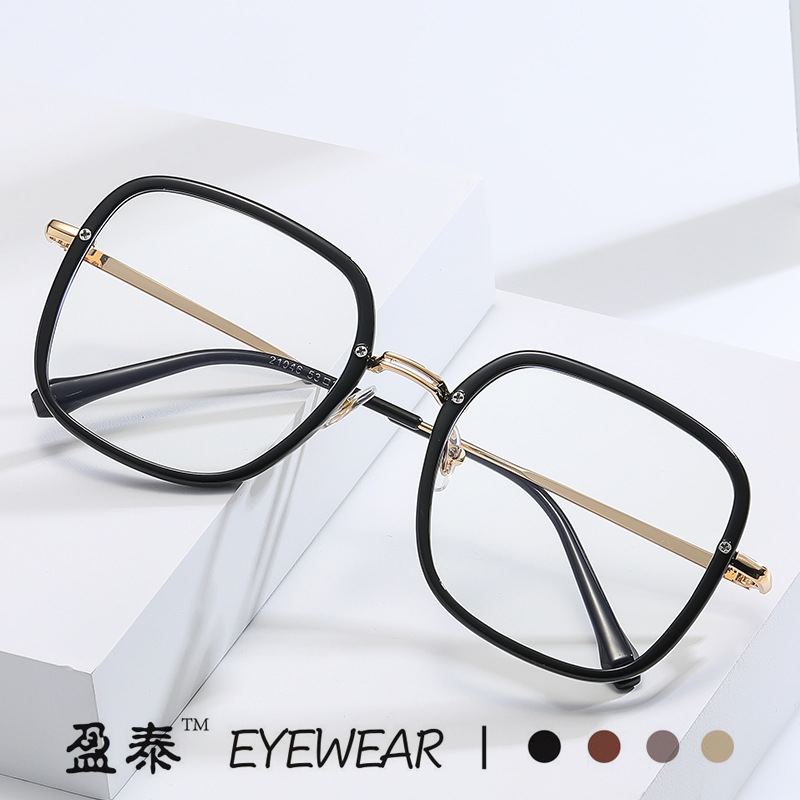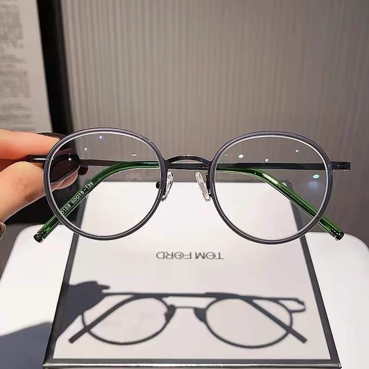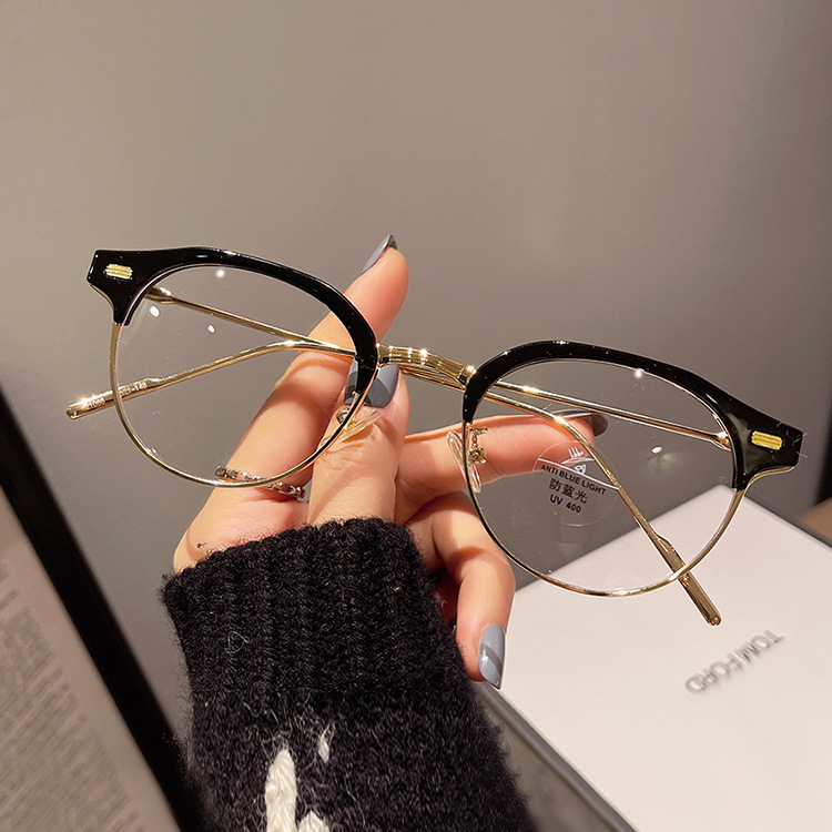 2023新型楕円枠ブルーレイ防止メガネ韓国版個性金属半枠近視眼鏡枠レトロ平光鏡