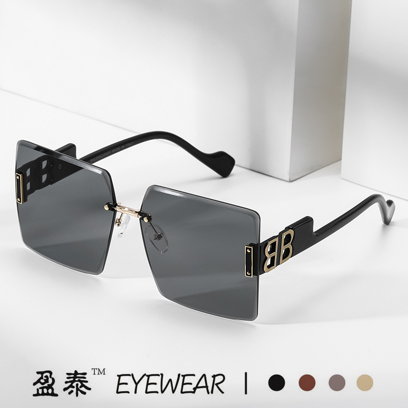 新型b家ファッション大枠縁なしサングラス欧米の潮人街拍凹形グラデーションカラーサングラス