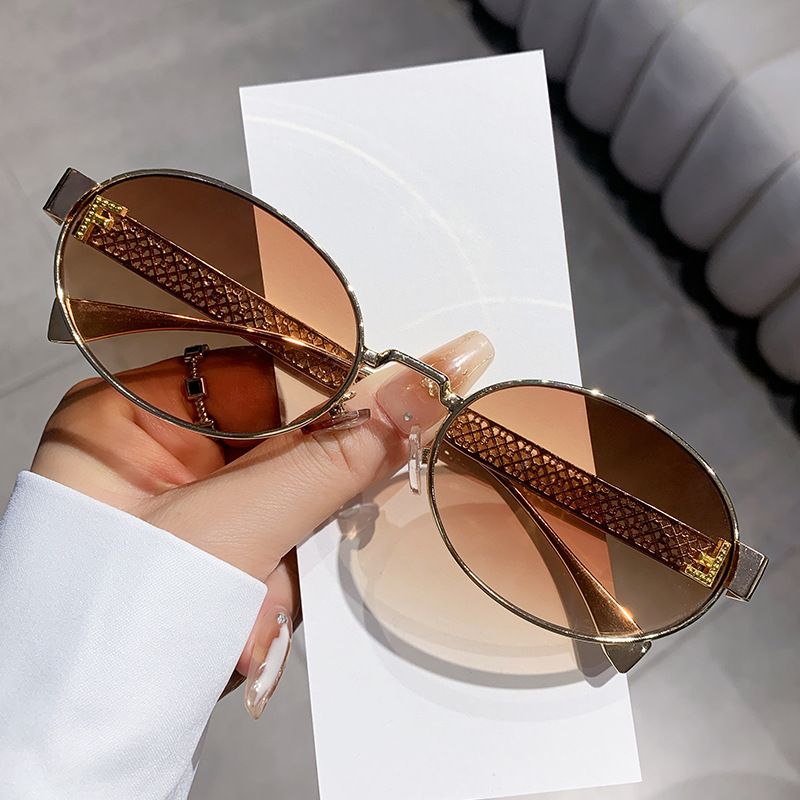 新しいヨーロッパとアメリカのファッションレトロオーバルサングラスライチパターンワイドエッジサングラスクロスボーダーレディースサングラス