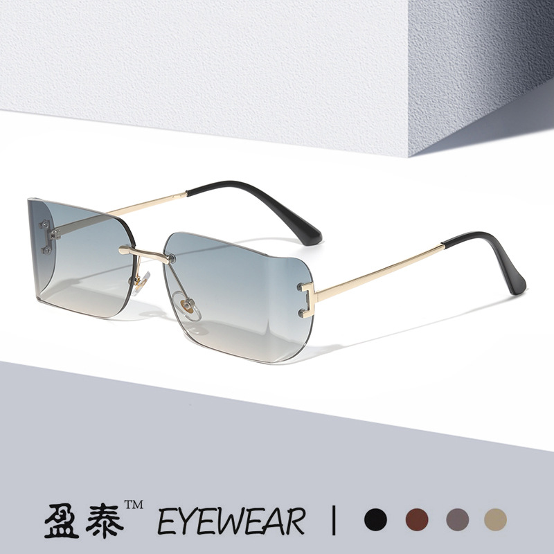新型チーター装飾無枠サングラス欧米ファッションカットサイドメガネクロスボーダー個性街拍潮サングラス女