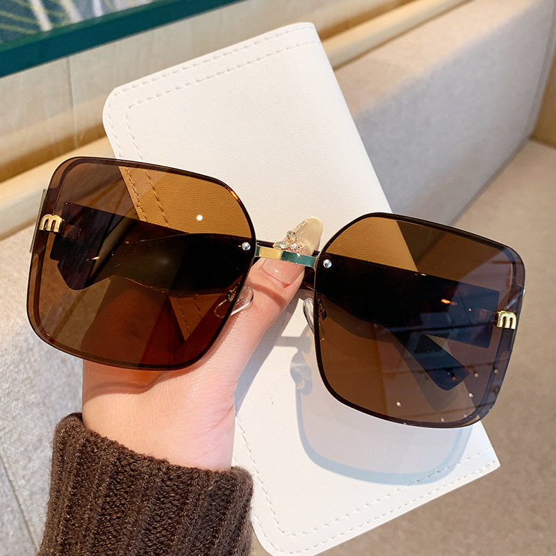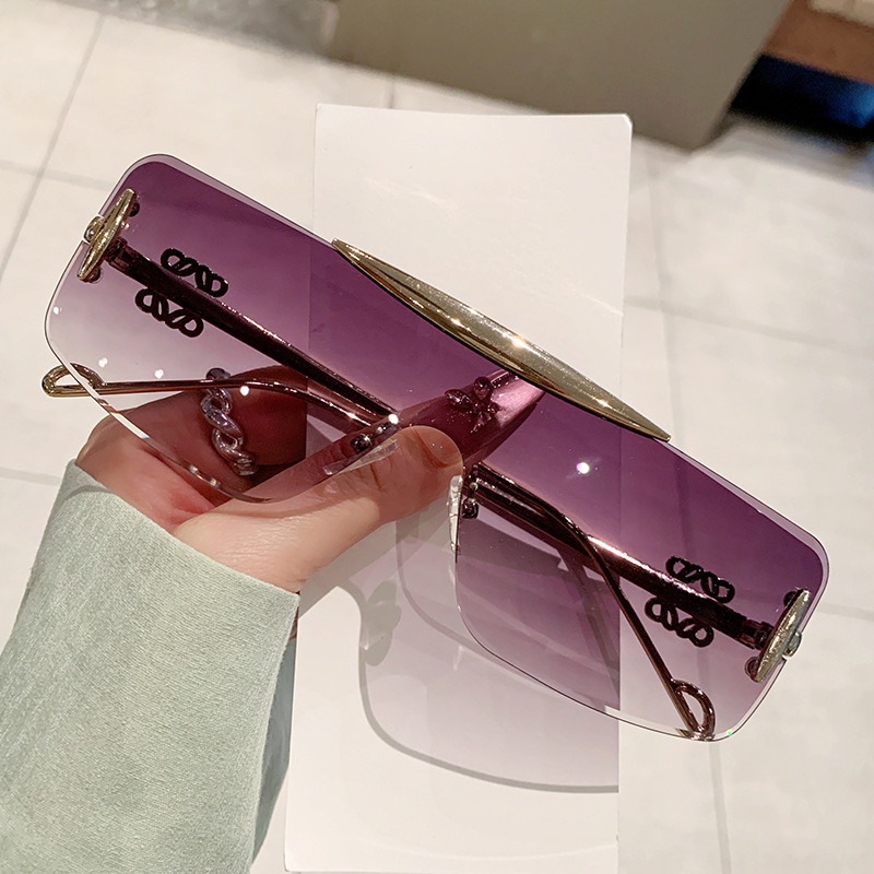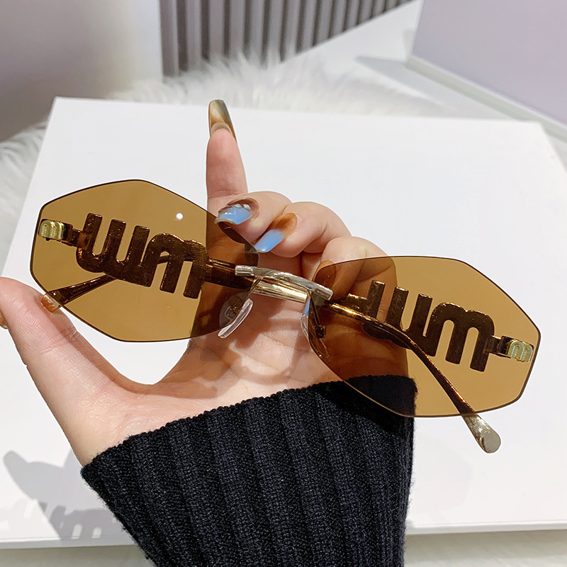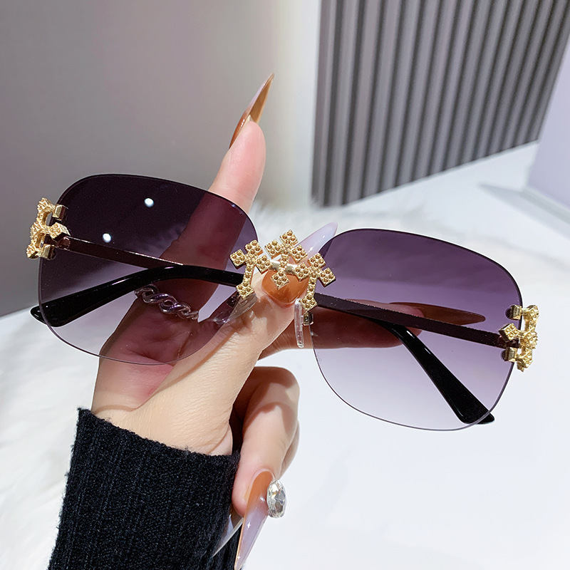 2025新型カード家insネット赤国境を越えた縁なしサングラス女性高級感金属リベット脚ファッションサングラス