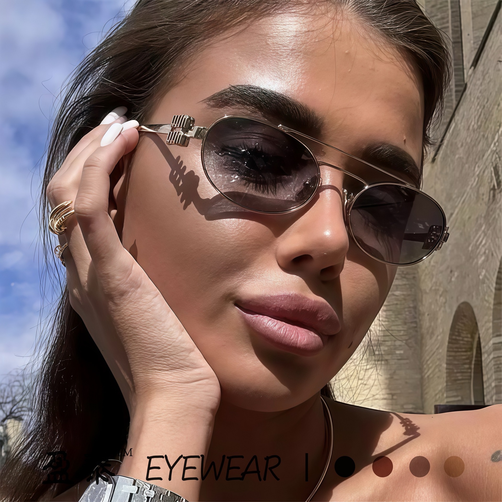 楕円双梁サングラス2025新型欧米サングラスクロスボーダーファッションギャルレトロサングラス凹形形