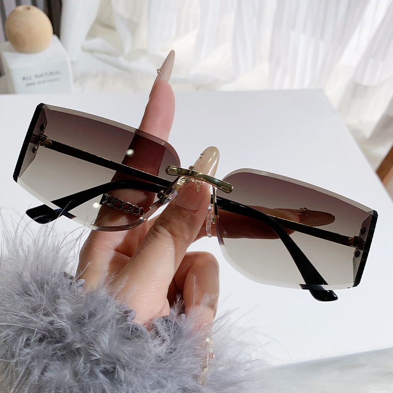 2025新型サーフレンズ豹頭サングラスy 2k金属枠なしエッジカット個性サングラス女性高級感