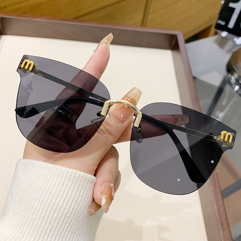 新しいMのでたらめな家のサングラスy 2kの甘いクールなギャルの金属の縁なしのサングラスの個性のネットの赤い街はサングラスの女性をたたきます。