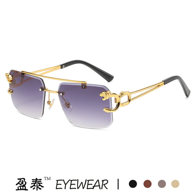 新型欧米レトロ双梁サングラスファッション豹角型縁なしサングラス女性潮クロスボーダー卸売り