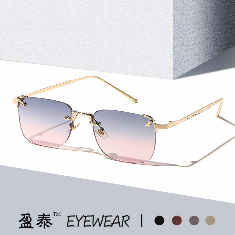 新商品のフレームなしのファッションの正方形のサングラス欧米の潮は辺のサングラスの個性のグラデーションの色のサングラスの女性の卸売りを切ります。