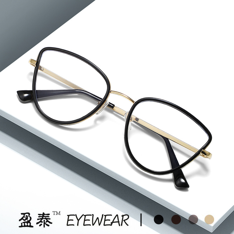 国境を越えた欧米の三角猫眼金属眼鏡フレーム2023新型ブルーレイ防止平光鏡は近視眼鏡フレームに合うことができる