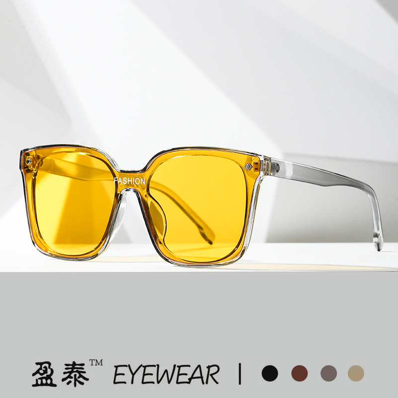 ネット赤連体大枠角型サングラス女性レトロins黄色サングラス男性車紫外線防止