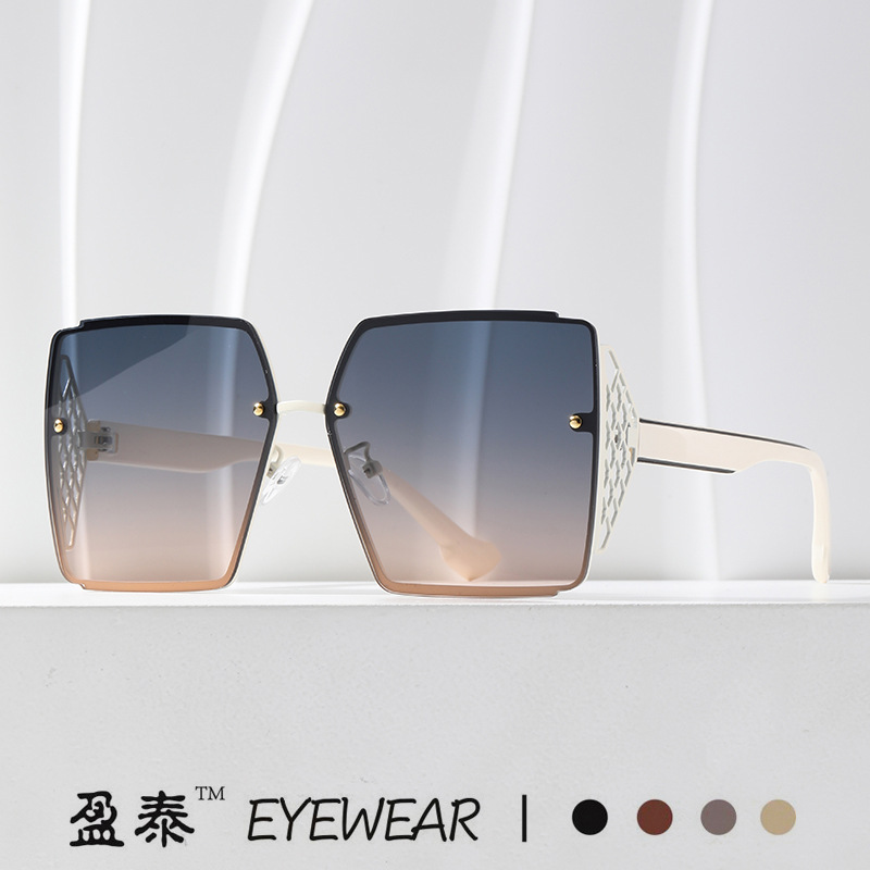 2023新型の縁なしの縁切りのファッションサングラスの女性欧米の潮流はネットの赤い同型の街を着てサングラスを撮ります。