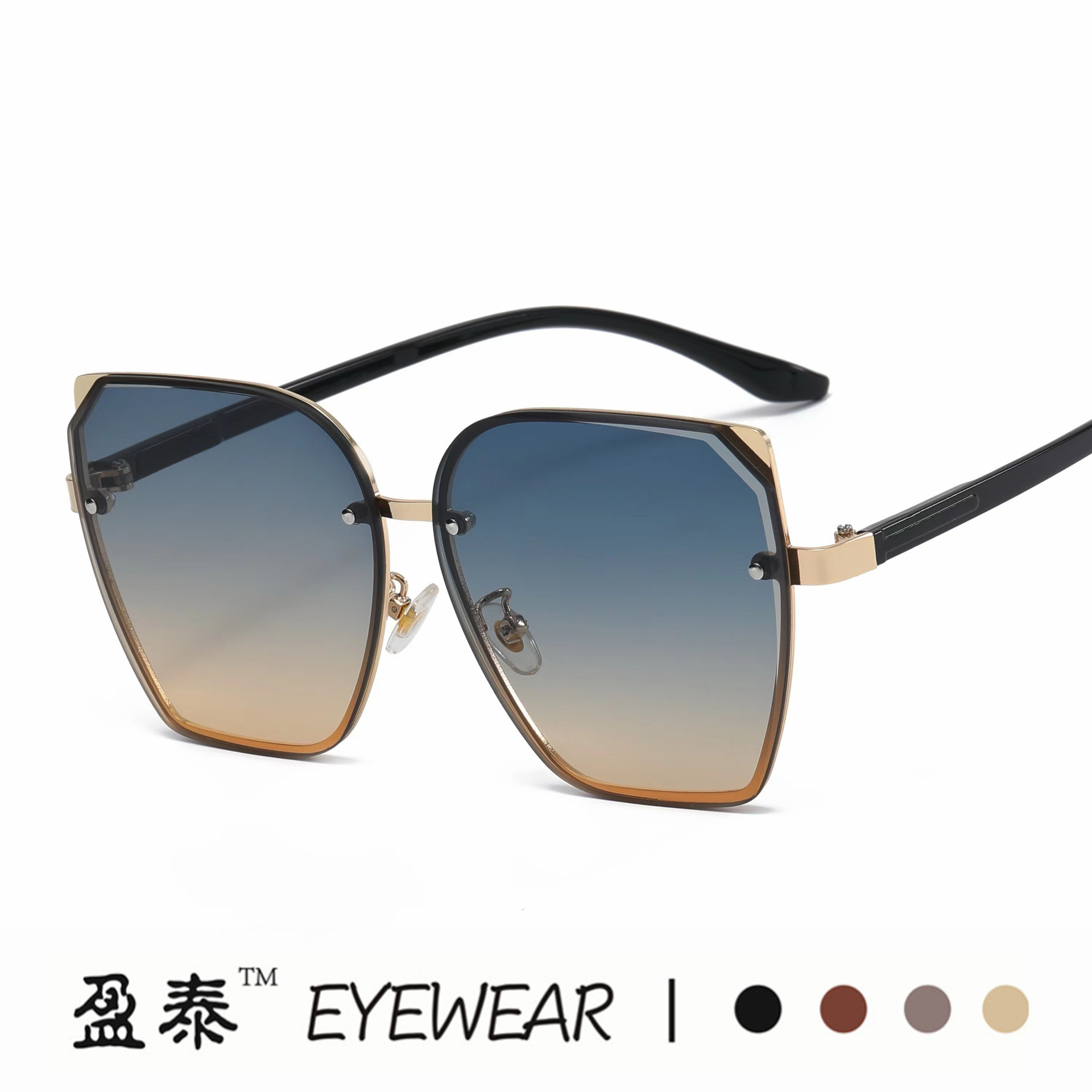 新型クロスボーダー角型縁なしサングラス女性グラデーション色サングラスネット赤ファッション街拍眼鏡