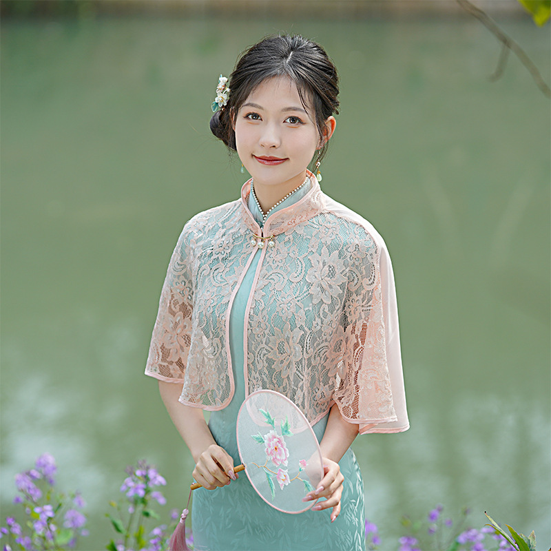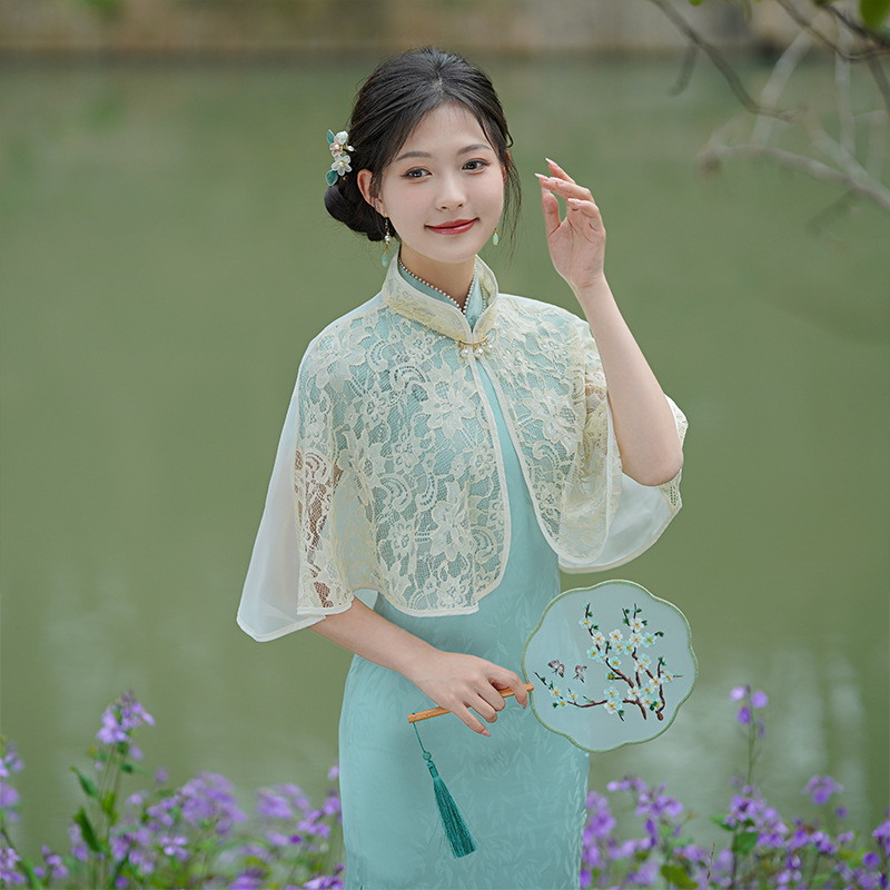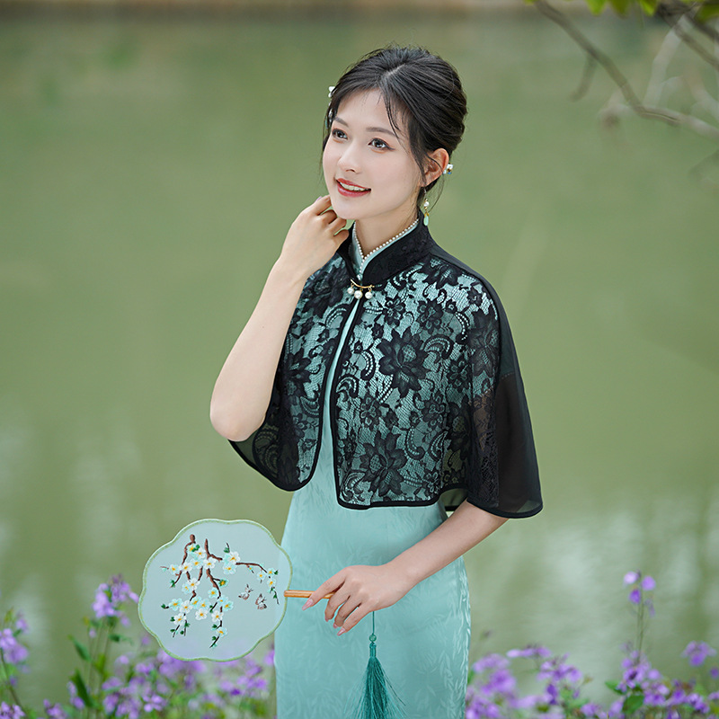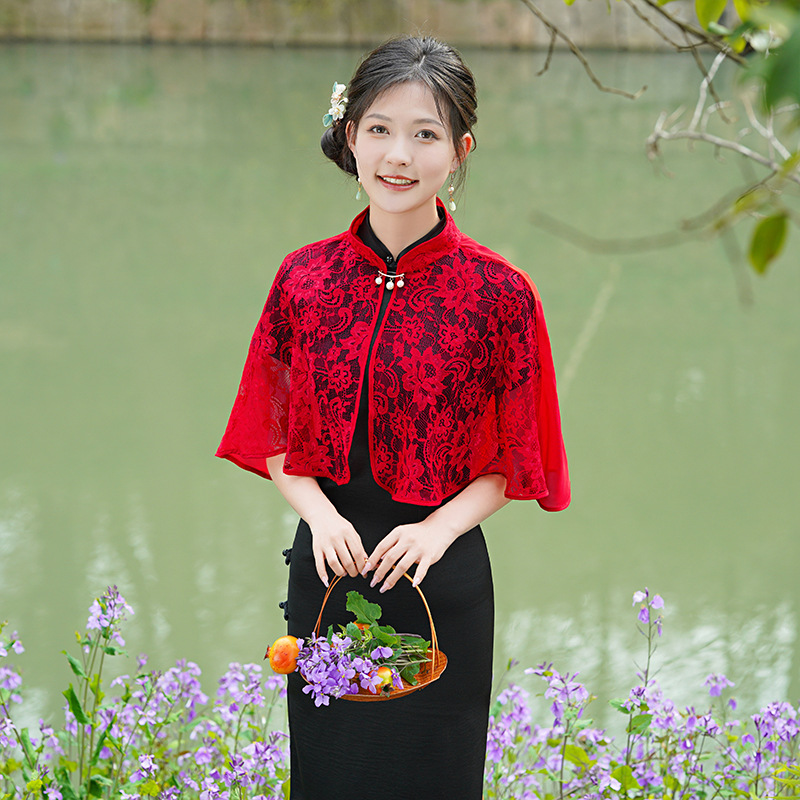 立襟カン肩夏レースマントショールウエディングドレスチャイナドレス日常防備スカート女性レトロ風