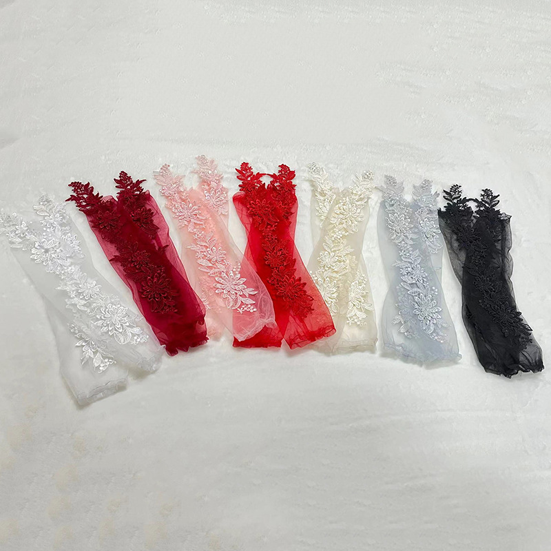 2024新型レースのウェディングドレスの手袋の部品レースの日焼け止めの手袋の長いタイプの精巧な刺繍のウェディングドレスの手袋