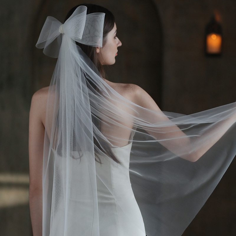 メーカー卸売り超仙弾力網蝶結び花嫁の頭糸白い二重襟証結婚式の柔らかい糸の旅の写真
