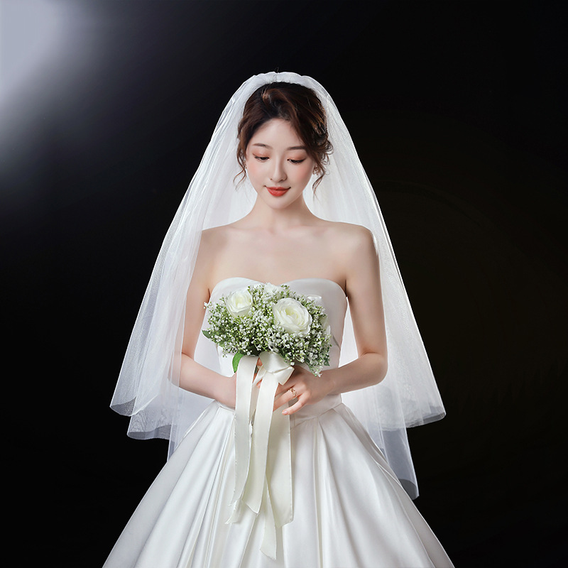 2023年 小さなベール 結婚証明書撮影用 花嫁 結婚式アクセサリー 写真スタジオ撮影用 多層ドレス ふわふわウェディング必須アイテム