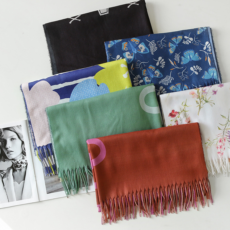 カシミヤのデジタルプリントのマフラーの新型秋冬の両面の油絵の国風の保温の旅行の贈り物をまねてマントを厚くします。
