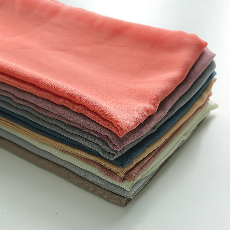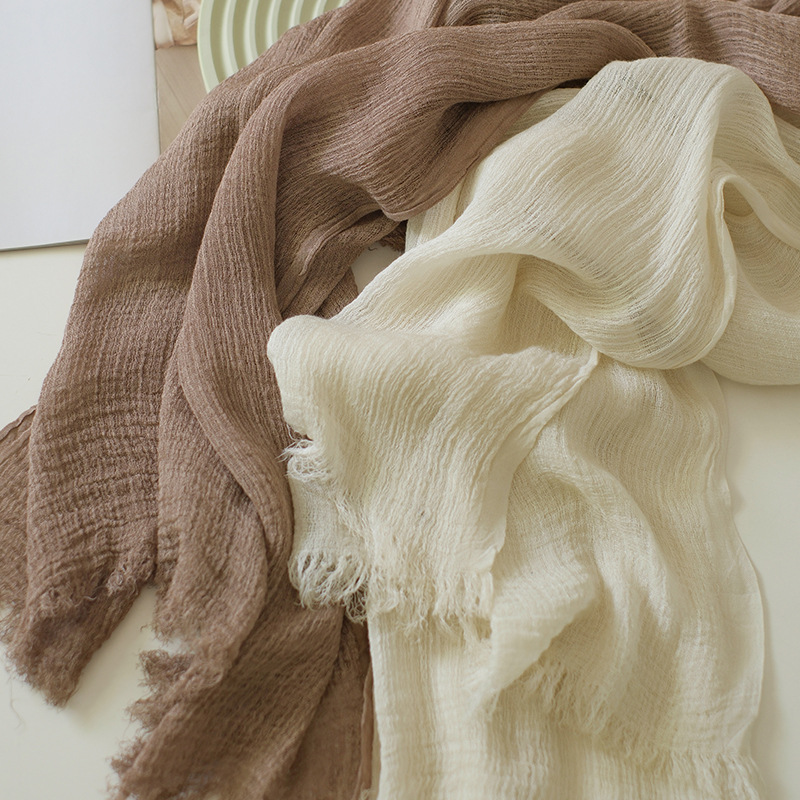 女性用無地コットンとリネンのしわスカーフ、新しい国境を越えた人気の単色四面ひげ日焼け止めガーゼスカーフ、外国貿易ターバン
