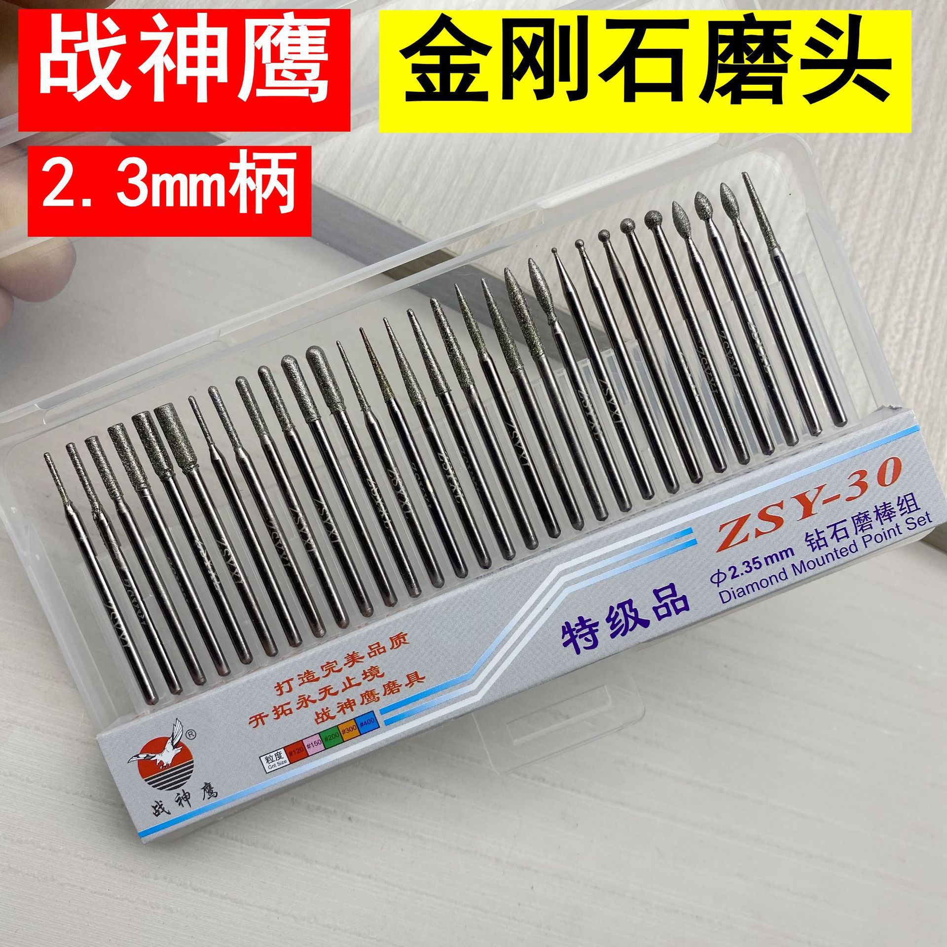 戦神鷹ダイヤモンド研削棒2.35mm棒30PCS玉合金研削ヘッド金剛砂石研削針セット