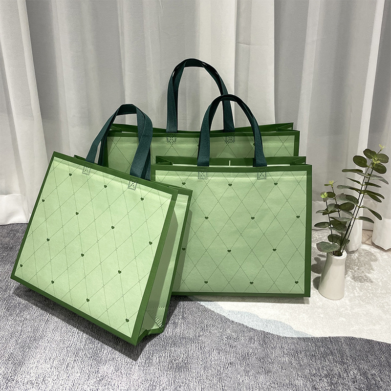 緑の愛の膜の不織布袋の服の店の手提げ袋の卸売りの簡単な大気のショッピングバッグの贈り物の袋