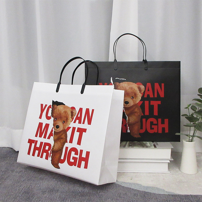 漫画かわいいベアー子供服手提げ袋洋服店不織布袋子供ショッピングバッグ卸売り