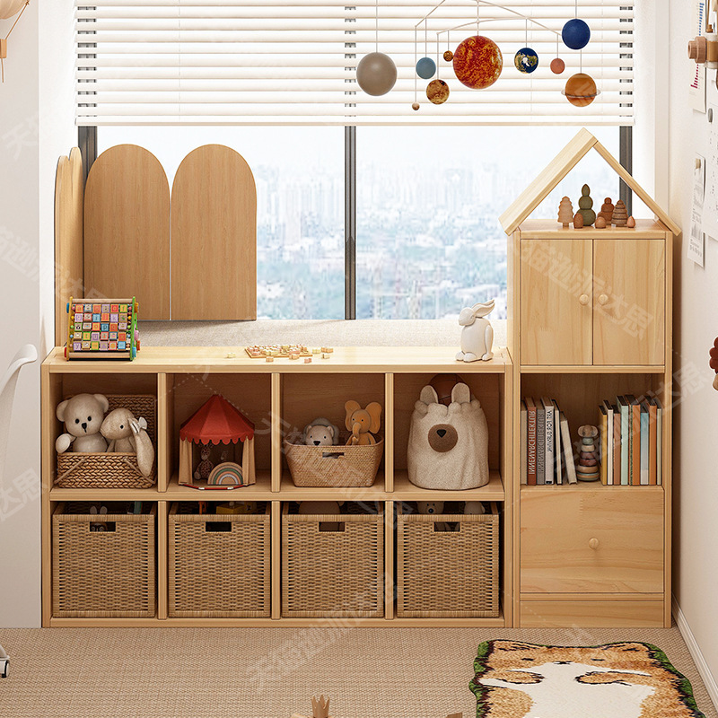 無垢材本棚本棚収納ラック床置き小さな家の収納キャビネット幼稚園の壁のキャビネット収納キャビネット8コンパートメントキャビネット