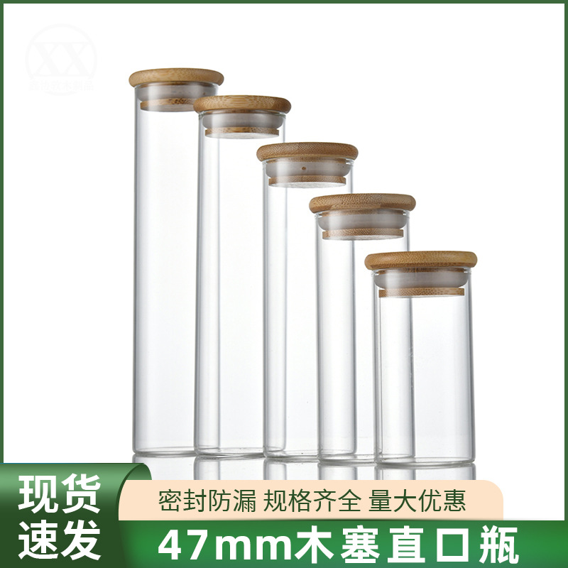 47mm竹蓋直口管製瓶透明密封小瓶厨房茶葉携帯分注瓶食品級貯蔵タンク