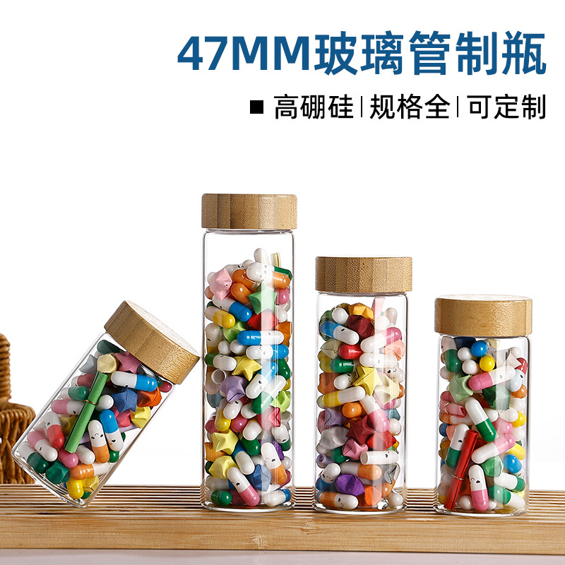 22mmナット透明パイプ瓶竹蓋試験管空瓶草瓶薬粉瓶透明花茶分注瓶金豆瓶
