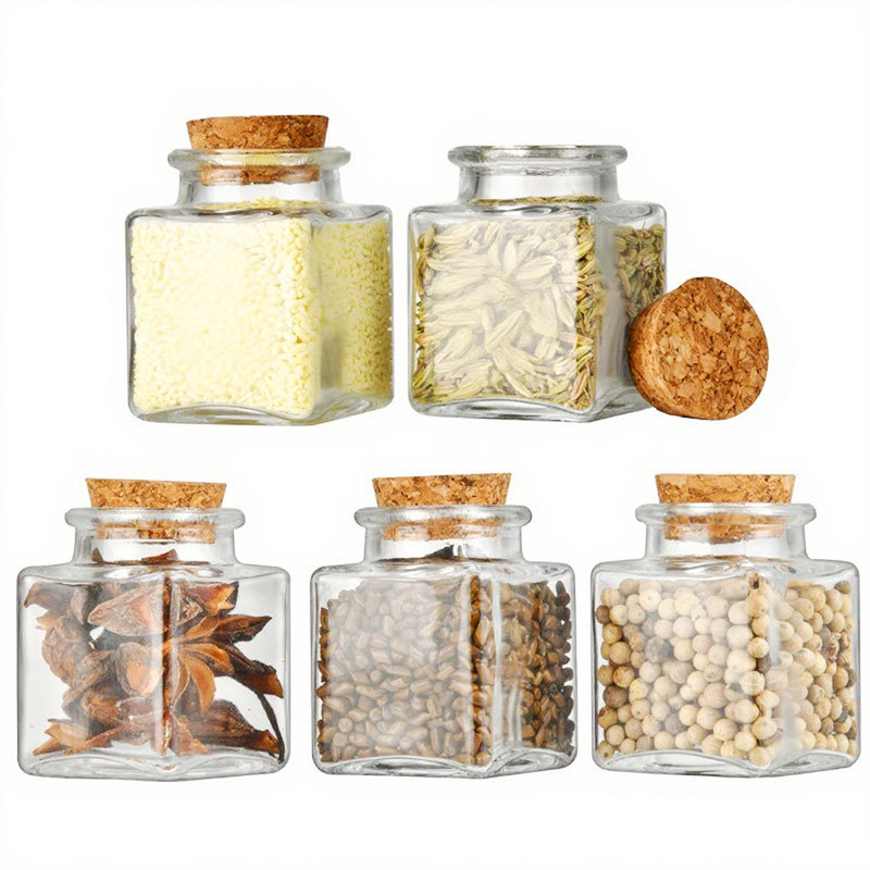 ガラス透明食品調剤ボトル正方形の小さな調味料瓶キッチン穀物保存瓶コルク栓ウィッシングボトル