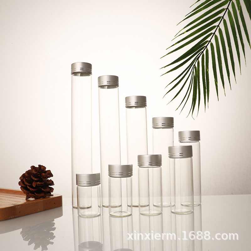 22mm大口アルミナ銀蓋管製瓶許念瓶漂流瓶ガラス瓶キャンディー瓶虫草瓶カプセル瓶
