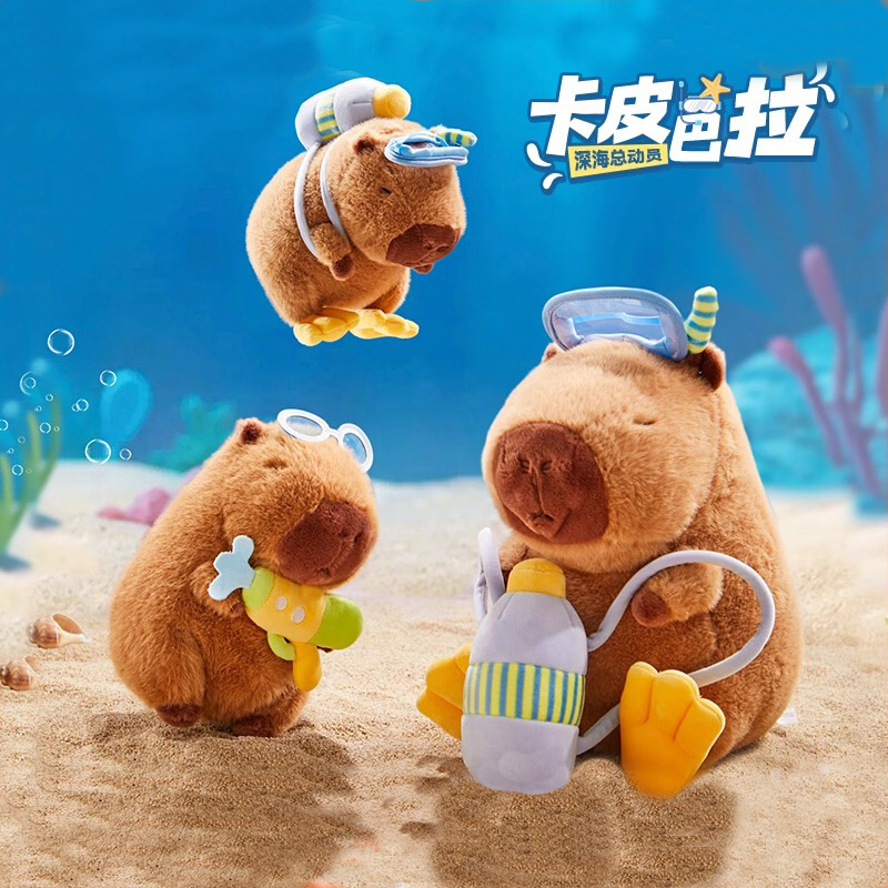 新型ダイバーのカピバラのぬいぐるみは水鉄砲を背負っています。