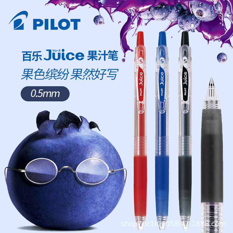 Pilot百楽juiceジュースペン日本中性ペン0.538青と黒の赤いペンは芯の金属を押します。