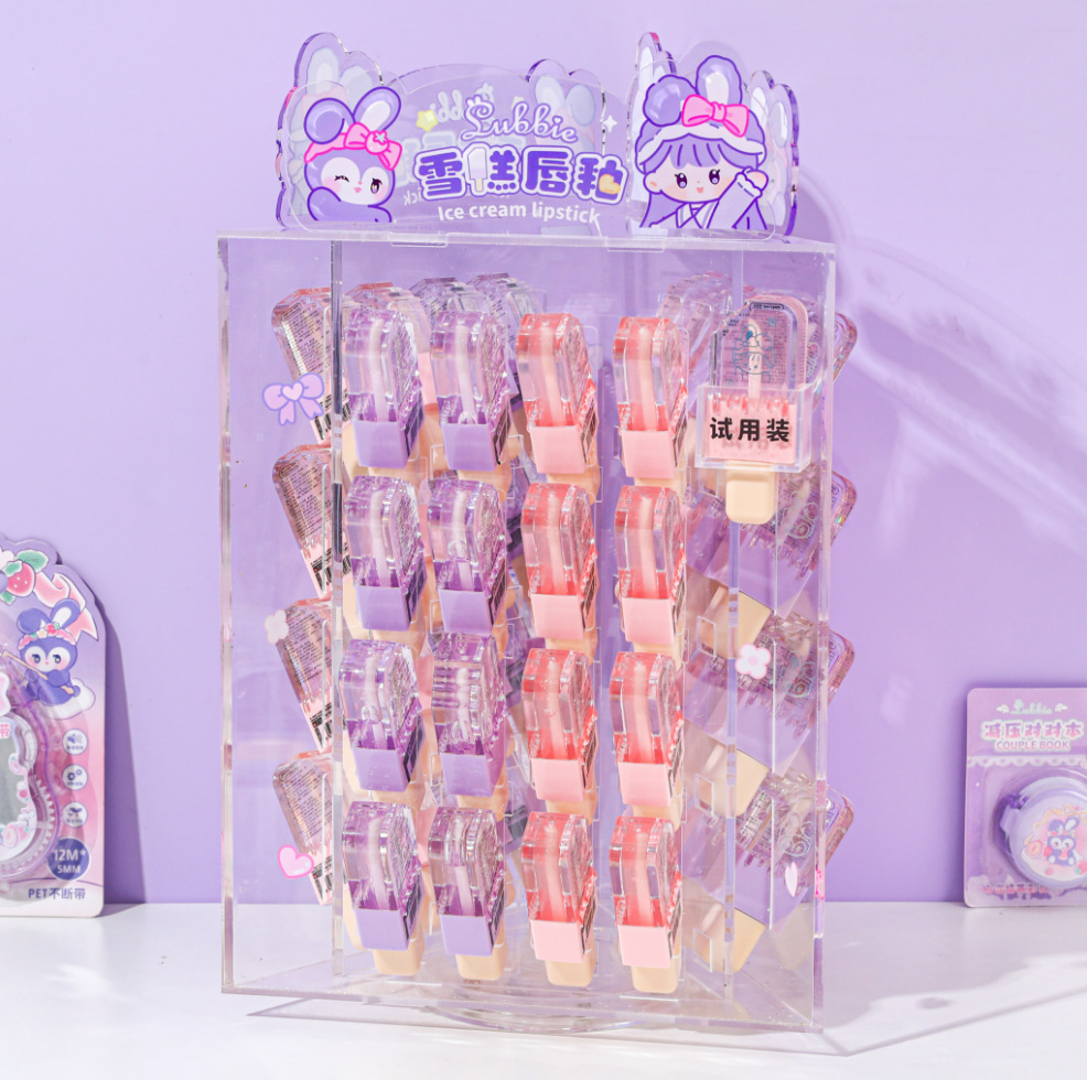指を鳴らしてXZ-D32046の紫星のウサギの小さい乳芙のシリーズのアイスクリームの形の唇の釉薬の口紅の48機を卸売りします。