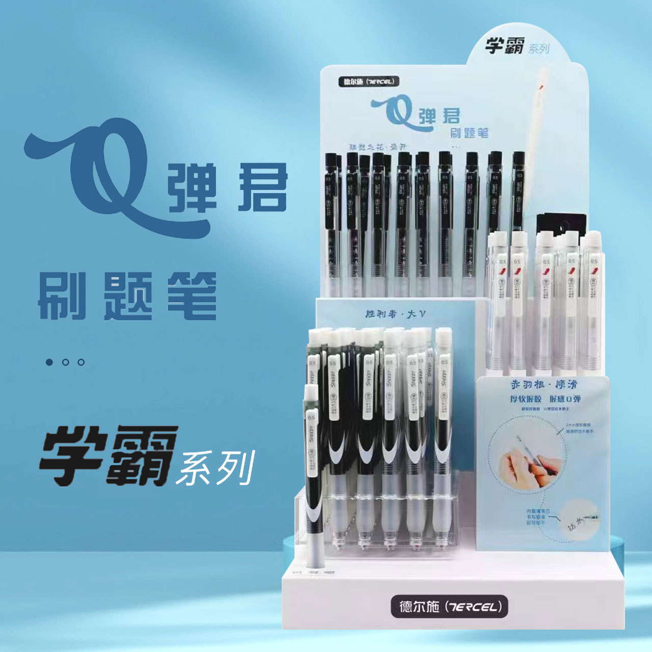 デルシュ中性筆q弾君透明系ins簡易金黒芯学生専用押し式弾力性十分