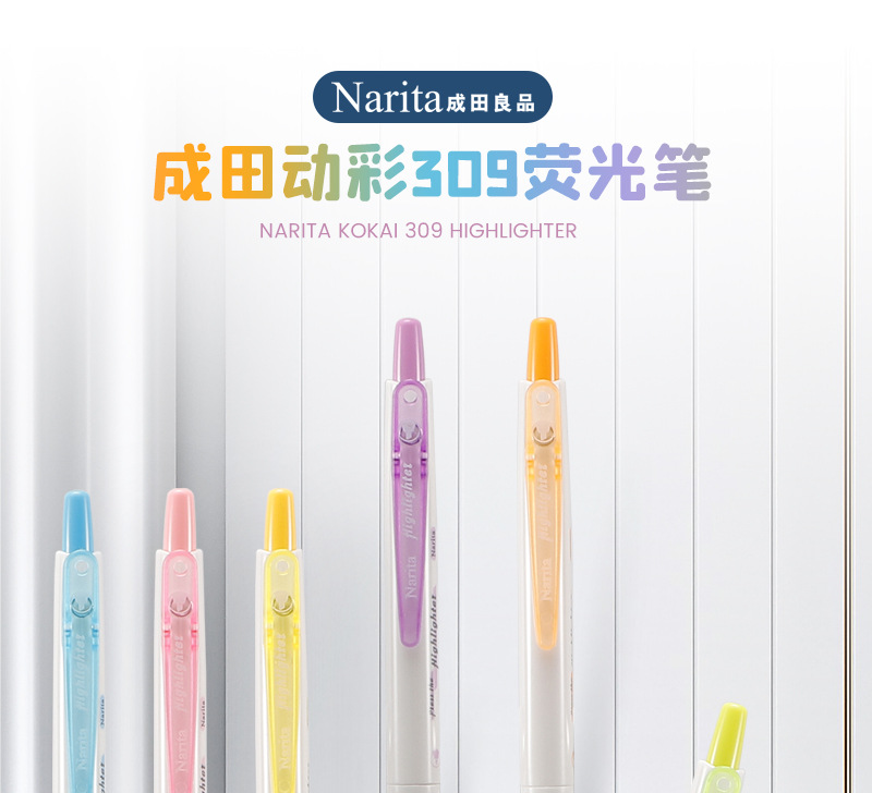 Narita成田良品309押し押し制式蛍光マーキングペン动き彩粗画アクセントマーク手帐ペン
