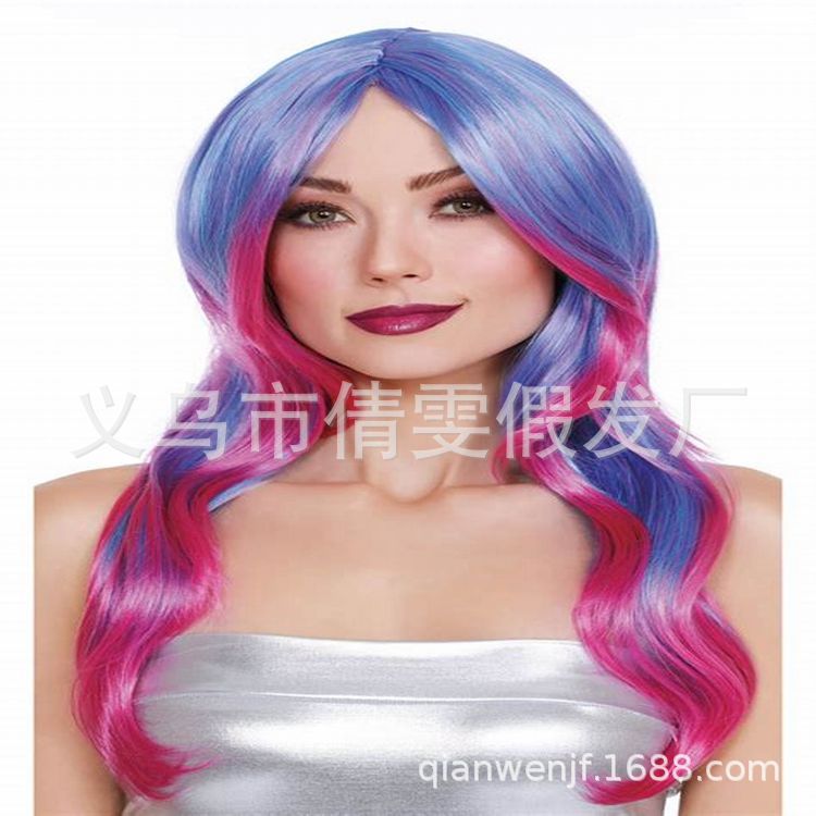 クロスボーダーかつら祭りかつら炎化学繊維かつらパーティーかつら紫色炎かつら