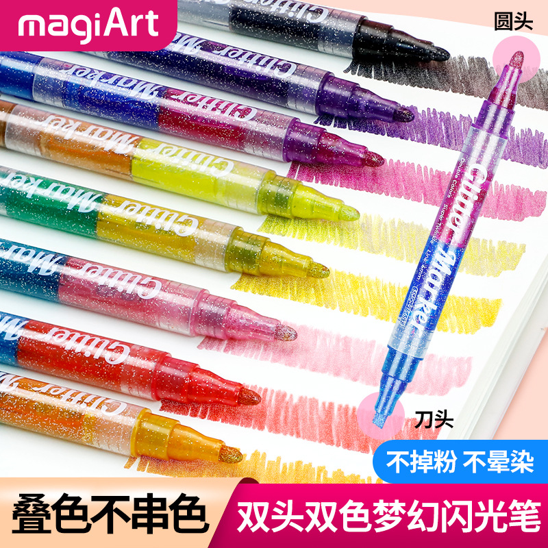 索美奇双頭二色フラッシュペン学生の手帳の彩色絵は粉のグリーティングカードの落書きを落としにくいです。