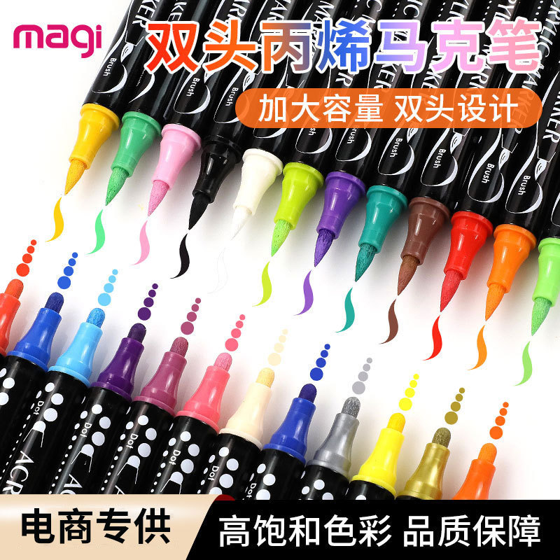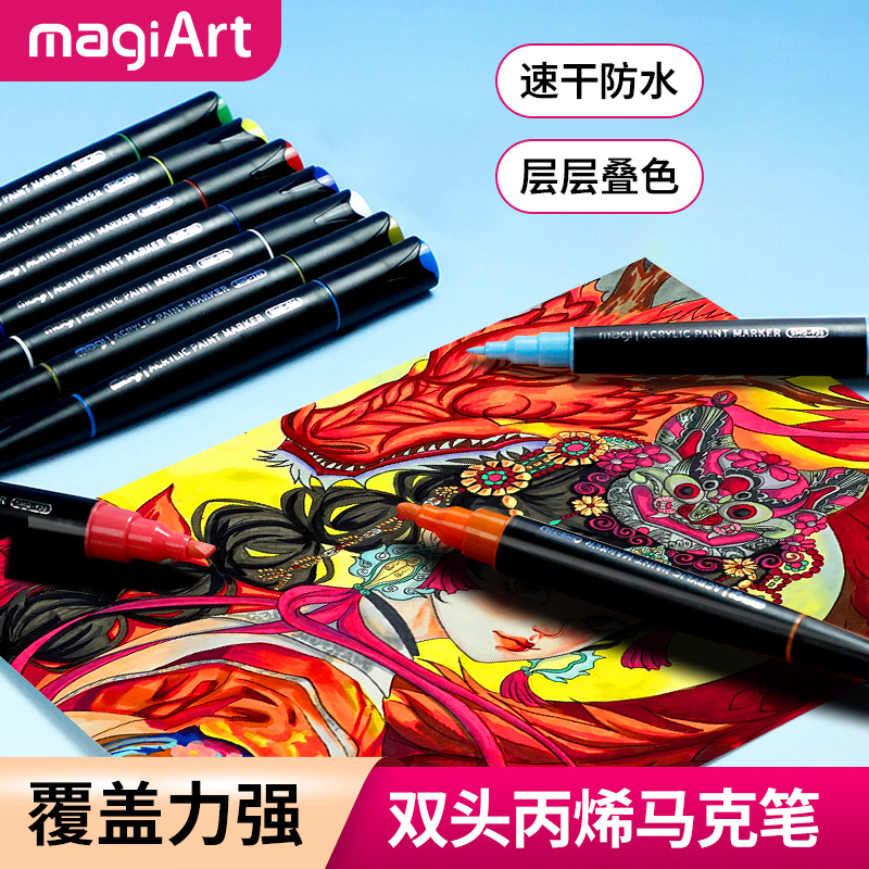 SOMEQI 双頭アクリルマーカーペン デューデューヘッド 学生落書き用 不透明紙積み重ね可能なカラー顔料マーカーペン