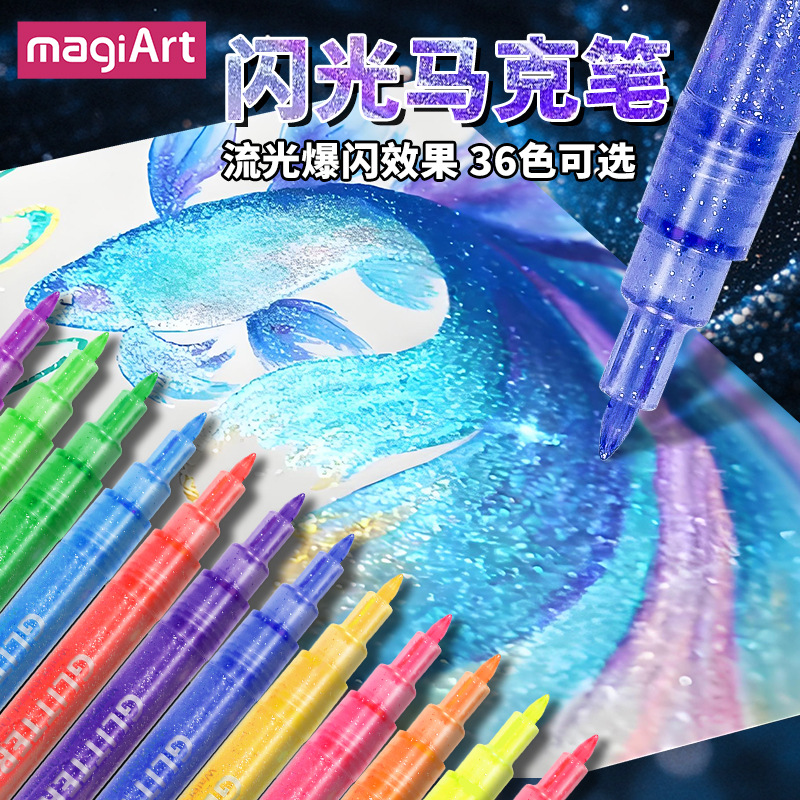 索美奇閃光アクリルマークペン12色セット子供グリーティングカード手帳ジェルペン星空流砂フラッシュペン