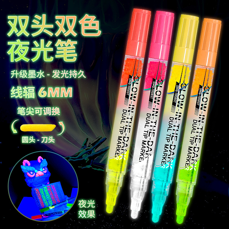 学生向けの双頭2色蓄光ペン、クリエイティブなDIY蛍光ペン、手作りの落書き着色、夜に光る蛍光ペン