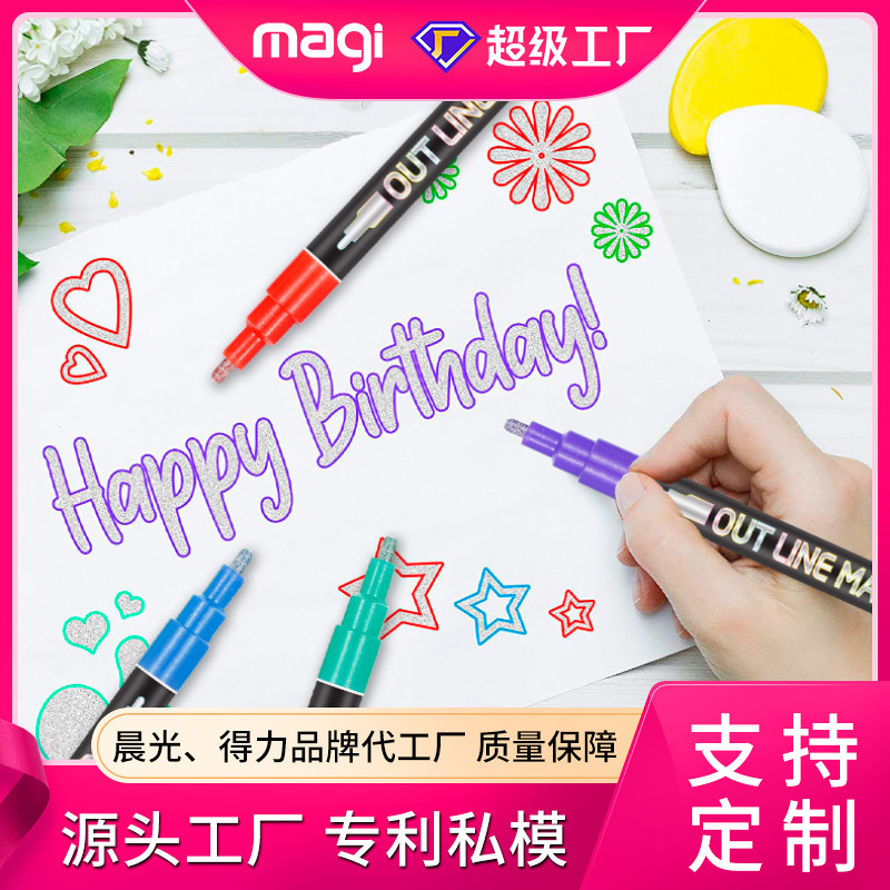 Amazonファンタスティックダブルラインプロファイルペンカスタム8色セットdiy手帐ペンカラー金属ダブルライン蛍光ペン