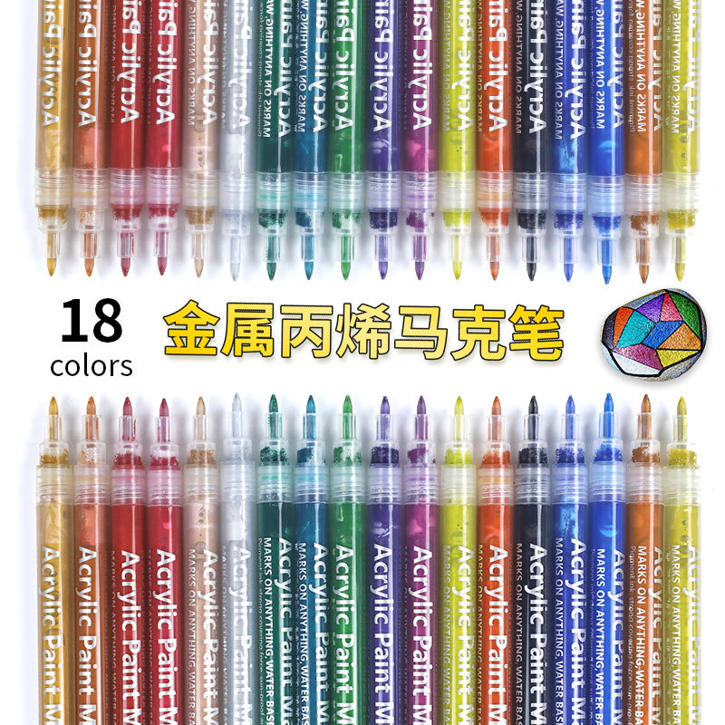 ソメイキ18色メタリックアクリルマーカーペン、アート、描画、落書き用、防水、速乾、重ね塗り可能、色落ちなし